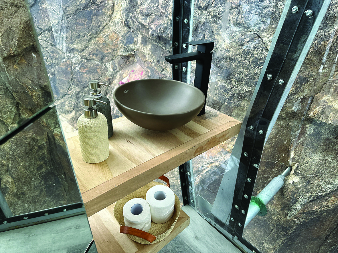 The capsules, custom-built for their location, integrate seamlessly with the rock wall. Their design takes into account aerodynamics, wind resistance and geomechanics to ensure stability and safety. Constructing them was a feat of extreme logistics. Because no roads were built, every material had to be transported manually, carried across rivers and small bridges before being lifted up the mountainside by a specially designed gondola system.